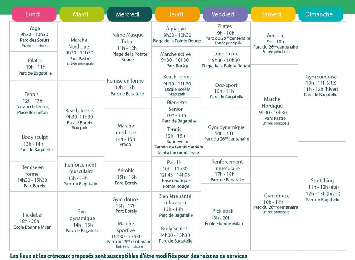 Les lieux de rendez-vous des activités sportives sont visibles sur le programme Sportez-vous bien.